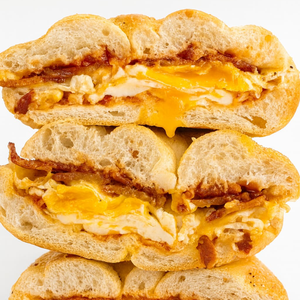 Assorted Breakfast Sandwiches with Egg, Cheese & Meat on a variety of bagels. (Minimum 10 people)